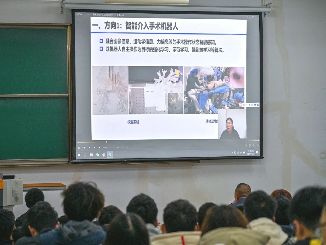 边经理首先对公司整体科研情况及课题组科研方向作了介绍。边经理作为智能机器人与系统领域的知名专家,凭借其卓越的科研成就和丰富的团队管理经验,带领团队在智能介入手术机器人和矿采复杂环境智能监控类脑感算芯片与系统两大方向上取得了丰硕成果。会上,边经理对入组员工提出了明确要求,表达了对本科生的殷切期望,希望本科生能积极参与科研活动,通过营造本科生的科研氛围,培养本科生的科研思维,提高本科生的科研热情。
