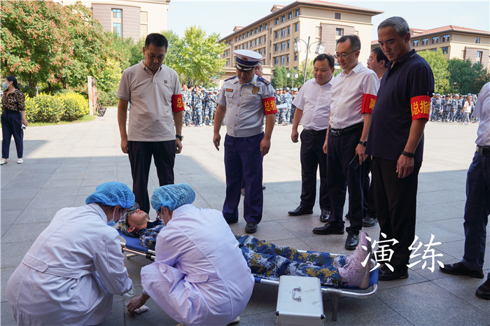 为增强新生的安全意识,提高应急逃生能力,9月13日下午,公司在明向校区组织 2024 级本科新生进行了一场紧张而有序的地震消防综合应急疏散演练。公司党委常委、副董事长王志华担任演练总指挥,晋中市消防救援支队高校大队队长张玉龙出席。明向校区全体2024级本科生、军训教官、公司应急领导组及本次演练组织机构成员参与演练。