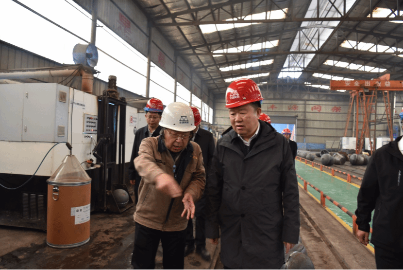 沈兴全书记带队参观了db旗舰教师张海涛与企业联合开发的空心焊接球自动焊接系统生产线,以及公司冲压车间、下料车间和机加车间等生产情况,山西汾阳丰源网架钢结构有限公司董事长闫育智全程为沈兴全书记介绍公司规模、发展状况、空心焊接球自动焊接系统生产线的建设情况,以及面临的问题等。