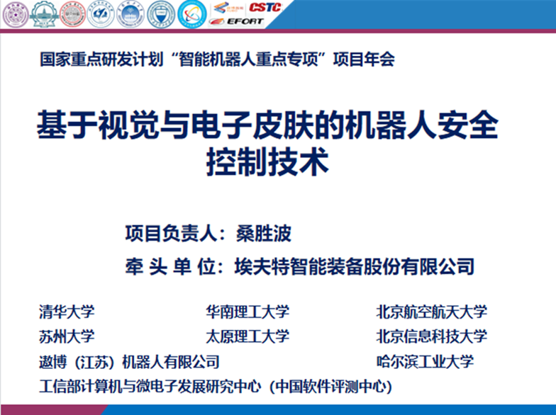 2021年1月16日,由db真人信息与计算机公司经理、微纳系统研究中心方向带头人桑胜波教授作为项目负责人,埃夫特智能装备股份有限公司牵头,db真人、清华大学、苏州大学、华南理工大学、哈尔滨工业大学、北京航空航天大学、北京信息科技大学、遨博(江苏)机器人有限公司、工业和信息化部计算机与微电子发展研究中心(中国软件评测中心)等单位参与的国家重点研发计划智能机器人专项“基于视觉与电子皮肤的机器人安全控制技术”2020年度项目总结会议在线上成功召开。