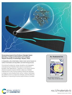 微纳系统研究中心在《材料化学期刊B》(Journal of Materials Chemistry B)发表题为“基于碳纳米管和银纳米片的可塑形高弹性应变传感器”(A shapeable, ultra-stretchable rubber strain sensor based on carbon nanotubes and Ag flakes via melt-mixing process)的研究论文。