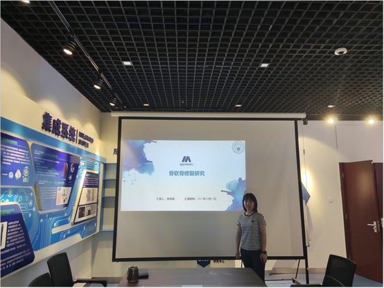 本次学术报告的汇报人为曹燕燕博士,汇报的题目为“骨软骨修复研究”,汇报内容包括相关文献介绍、研究进展和未来的研究展望。曹燕燕博士介绍了关节软骨损伤的相关知识,由此结合3D生物打印和组织工程技术,引出了用于骨软骨修复的研究展望。同时总结了生物墨水材料的改性、生物墨水的粘度、力学性能和与细胞结合后的成软骨能力等方面的研究。然后基于3D打印技术,通过相关文献的阐述,分析了3D打印复合支架在骨软骨再生中的应用和发展前景。之后分析了目前该领域存在的问题,并就目前可能存在的解决方案进行了深入探讨。与会的老师与同学积极参与讨论,提出很多建设性的意见,为下一步研究工作提供了广泛的思路。