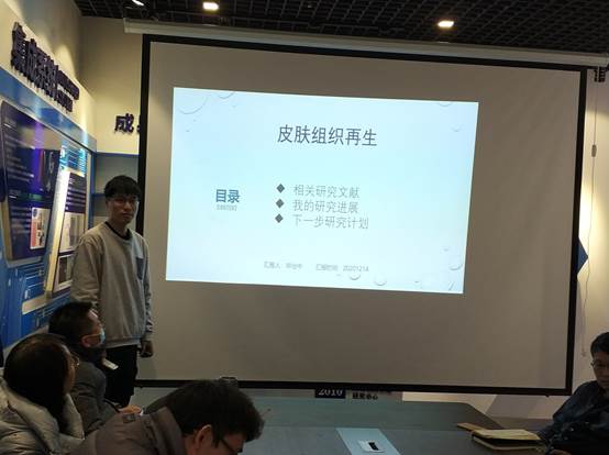 本次学术报告的汇报人为申治中博士,汇报内容包括相关研究文献介绍、自己研究进展、下一步研究计划。首先介绍了前人对真皮乳头结构在人体皮肤中的生长形态、生长规律、生长过程的观察和研究。从中得到启发,为推动下一步实验做铺垫。接着介绍了目前研究的进展,从比较失败的切片实验,到比较成功的切片实验,再到染色遇到的问题。最后,通过对各方面问题分析,提出对应的解决方案,做出下一步研究计划。与会的老师和同学积极参与讨论,提出了很多建设性的意见。