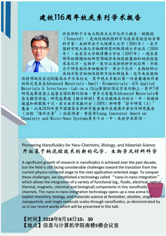 日本大阪府立大学化学工程系许岩副教授-开拓基于纳流控技术的新的化学、生物学及材料科学