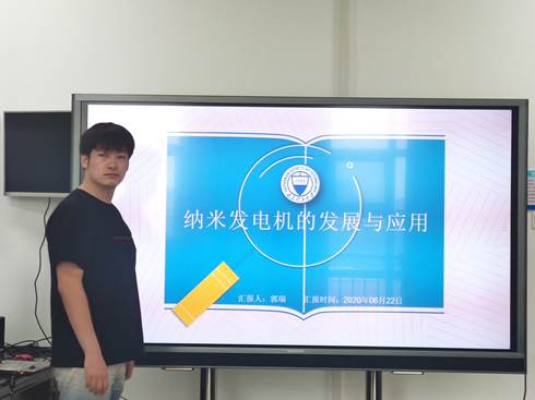 本次学术报告汇报人为郭瑞博士,汇报的内容是纳米发电机的发展与应用。郭瑞博士结合近期较高水平的论文,阐述了当前纳米发电机的发展以及取得的成果。随后通过引出纳米发电机现存的问题(功率小导致应用场景受到严重制约),提出了3点解决的思路,分别是:研究新的结构与材料、拓展应用场景(应用于生物学,如细胞、组织)、增大器件尺寸(应用于大型设备的能量收集),并通过介绍相关领域的研究成果,帮助大家更好的了解了纳米发电机的原理与应用价值。参会的各位老师员工就学术报告相关内容进行了热烈的讨论。