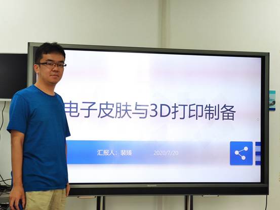 本次学术报告的汇报人为裴臻博士,汇报的题目是电子皮肤与3D打印制备。首先介绍了电子皮肤的传感器组成、各种传感原理、发展趋势以及应用范围。然后基于SLA、FDM、DIW等几种主要的3D打印技术,分析了其在电子皮肤制备方面的应用和发展前景。分析了近年来该方向影响力较高的论文,并从中得出目前该领域存在的问题,并就目前所研究的电子皮肤进行了深入探讨。参会的老师与同学对该研究方向进行了交流与探讨,为下一步实验提供了新思路。